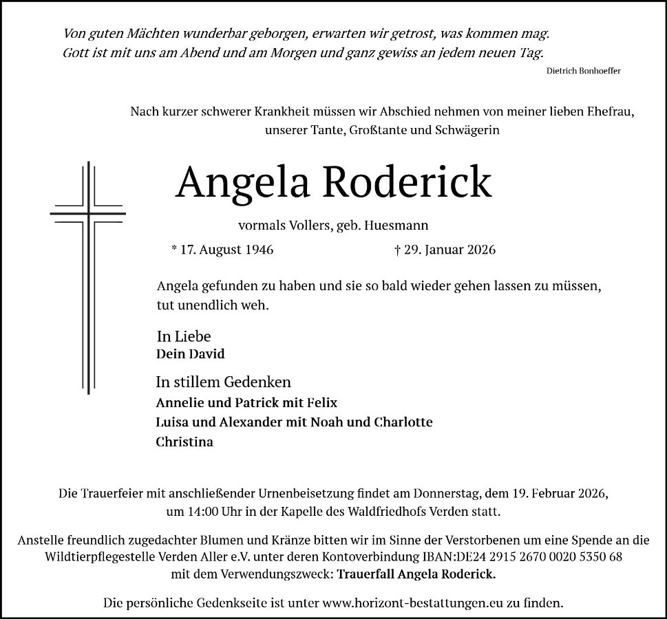 Angela Roderick geb. Huesmann
