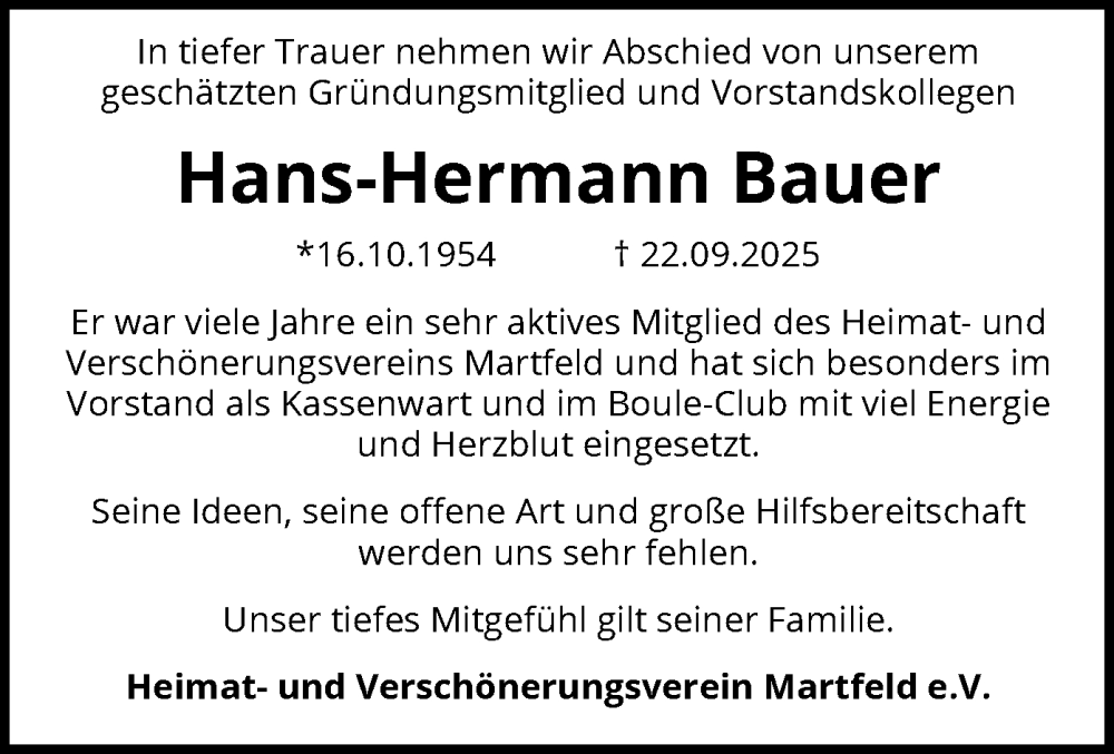 Hans-Hermann Bauergestorben am 22. September 2025