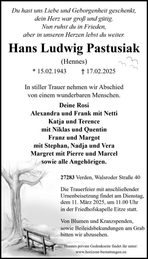 gestorben am 17. Februar 2025 in Verden
