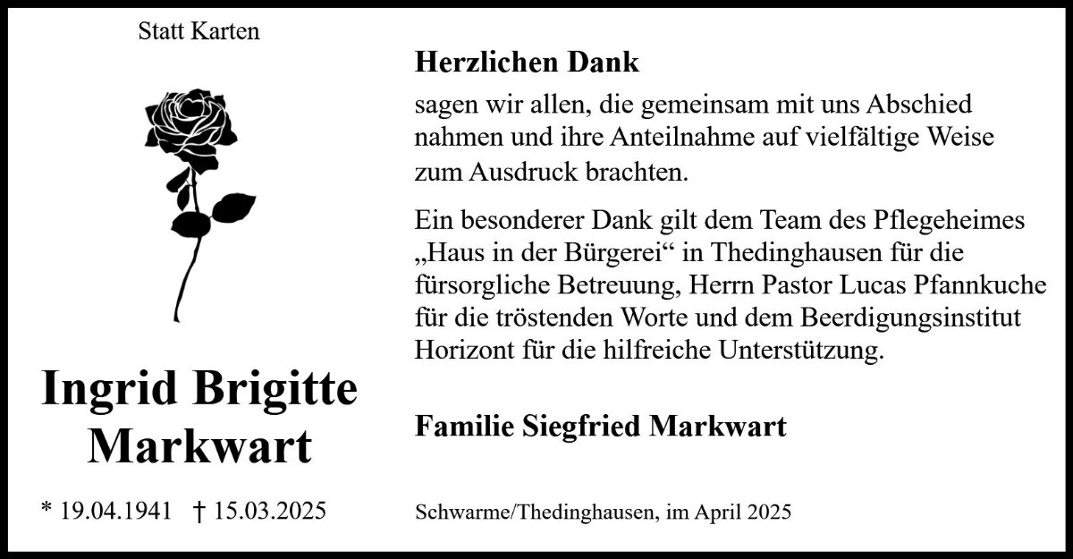 Liebe Inge, in unseren Herzen lebst du weiter.