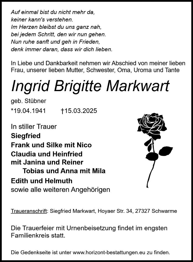 Lesen Sie hier die Anzeigen und Trauerpost!