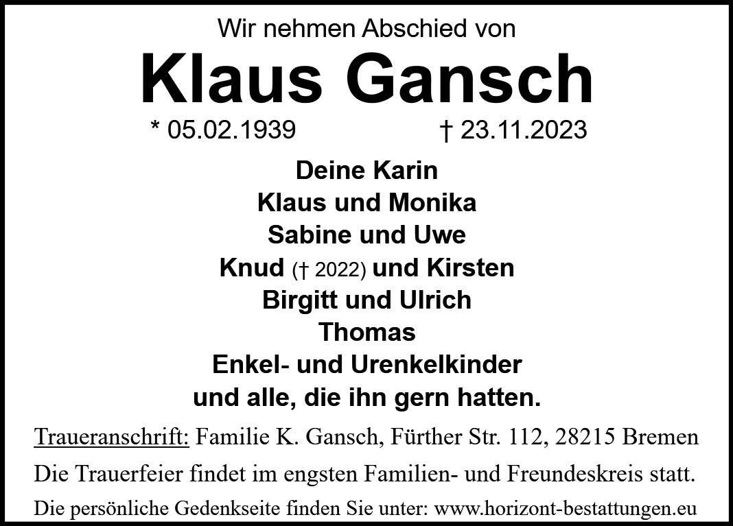 gestorben am 23. November 2023 in Bremen